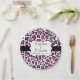 Plaques en papier Empreinte de léopard à poster de animal violet, noir et blanc, bordées d'une bannière noire, vous pouvez customiser avec les noms de la mariée et du marié et la date du mariage.
