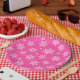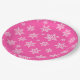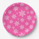Assiettes En Carton Les flocons blancs sur le Motif d'hiver rose