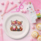 Plaques en papier avec une adorable image de 2 renards portant des lunettes de coeur mignonnes teintées roses. Décoré avec des accents de coeur.