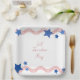 Célébrez l'anniversaire de l'Amérique avec ce jardin-barbecue amusant et patriotique 4 juillet avec des rayures rouges festives et des étoiles bleues sur un arrière - plan couleur ivoire.
