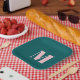 Preppy, simple, minimaliste monogramme fournit de la partie dans des couleurs bleu profond vert et rose pastel.