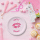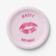 Assiettes En Carton Lèvres Roses Sur Damas Rose - Joyeux Anniversaire