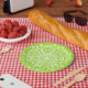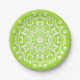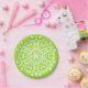Ce mandala blanc est assis sur un arrière - plan vert citron. Les couleurs sont énergisantes et lumineuses. Partie de la collection Mola Mandala.