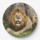 Ensemble de huit plaques en papier de 9 po avec l'image d'un beau lion à la Réserve nationale de Massai Mara.