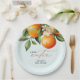 Little Cutie Orange Clementine Baby shower Favor Papier Plates présente un beau bouquet d'oranges aquarelles et de fleurs ainsi qu'un élégant type de calligraphie.