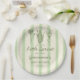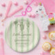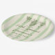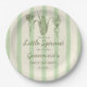 A Little sprout is on the way farmers market themed baby shower monogrammed paper plates, vintage retro green stripes handrawn sketch vegetables baby shower personalized paper plates, farmers market baby shower personalized table decor printed paper plates