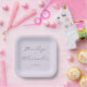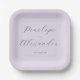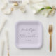 This elegant wedding plate design exudes a sophisticated and timeless charm with its soft lavender hue and graceful cursive typography. The minimalist layout, featuring delicate floral accents and gold-toned cutlery, creates an inviting and romantic atmosphere perfect for a special celebration. Ideal for adding a touch of class to your reception table settings, this design captures the essence of love and unity in its understated yet refined style.