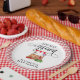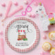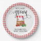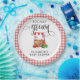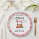 Locally grown baby shower featuring watercolor fresh vegetable stand and gingham patter custom paper plates.