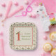 Plaques papier d'anniversaire avec une jolie chenille rampante sur le numéro 1. L'arrière - plan est un motif fait d'illustrations antiques d'insectes sur arrière - plan de papier vintage pour un look élégant. Customisez avec le nom de votre bébé.