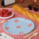 Plaques de papier avec motif sucré rouge et blanc sur arrière - plan bleu pour enfants ou fête d'anniversaire enfant