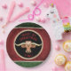 Éclaircissez votre table de Noël avec ces plaques de fête "One of a Kind" ! Cette comique Longhorn Steer vous souhaite un... "Moo~ey Christmas Y'all"!Art original par l'artiste Kerry Miller.