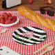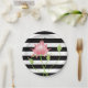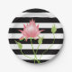 Une jolie fleur de lotus rose se balance gracieusement sur un arrière - plan rayé noir et blanc. Ce design convient à de nombreux types de célébrations, des anniversaires aux douches nuptiales, des mariages, des déjeuners de club de jardin, des réceptions et plus encore.