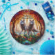 Ce design dynamique reproduit l'aspect du vitrail et présente un couple de loups parmi quelques arbres.