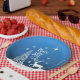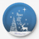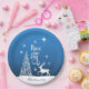 A colorful and unique paper plate for a Christmas party. The design features an artistic rendering of a snow scene with a blue background that contains the words "Peace, Joy, Love" all of them symbolic of the Christmas season. The text at the bottom is easily changed by using the template. Currently it reads "Christmas 2025" but this can be changed to a name or any other text you wish. If additional changes are desired (different type font, color, size or placement) select "Personalize this template" then select "Edit using Design Tool." See Options for other plate shapes or sizes. You may want to scroll down to the section "Transfer design to a product" for a few suggestions about other items this design can be used on.