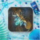 Luciole à vapeur avec ailes bleues transparentes et ampoule verte sur arrière - plan usé, marron, texturé. Style Steampunk.