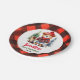 Ours en peluche en laine de la fête de la bûcheronnerie en lombard et bottes sapin et rondelle, vert rouge, noir, couleurs denim, bison plaid des plaques de papier personnalisées.