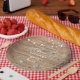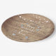 Une assiette en papier de campagne rustique avec des lumières de chaîne au-dessus d'un pot Mason vintage rempli de votre message personnalisé et de délicates fleurs sauvages dispersées sur un fond de panneau en bois naturel patiné. Parfait pour les mariages, les fêtes de fiançailles, les baby showers, les baptêmes, les fêtes d'anniversaire de mariage, les remises de diplômes, les réunions d'anniversaire et d'autres événements spéciaux tout au long de l'année ! Conçu par Thisisnotme©