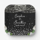 Assiette en papier Lumières de chaîne rustiques noires - Cette élégante assiette en papier noire et blanche, avec de jolies lumières de chaîne avec un éclat de diamant et des roses blanches peut être personnalisée avec vos informations de mariage.