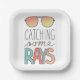 Plat amusant illustré à la main et lettré avec lunettes de soleil et la phrase attrapant quelques rayons. Idéal pour une fête de billard, un barbecue ou juste un été amusant se réunir.