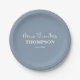 Ajoutez une touche d'élégance et de sophistication à votre prochaine occasion spéciale avec M. et Mme Elegant Simple | Dusty Blue Paper Plates personnalisées avec votre nom de famille et votre date de mariage.