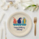 Ajoutez des vibes tropicales à votre prochaine fête avec ces plaques de papier personnalisées. Elles présentent des illustrations de trois macaws - une macaw écarlate, une macaw hyacinth et une macaw bleue et jaune - en rouge, jaune doré, bleu marine, bleu turquoise et gris dressées contre un arrière - plan crème ou beige doux.