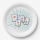 Plaques de fête en papier avec tuiles Mahjong avec arrière - plan sunburst bleu