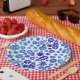 Assiettes En Carton Main bleue de Chine dessinée motif floral