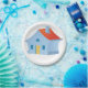 Une jolie petite maison bleue au toit rouge. Cette conception semble vraiment efficace sur ces Plaques de papier