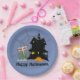 À Vendre ! Est-ce un tour ? Ou un régal ? Entrez dans l'esprit d'Halloween avec ces assiettes de maison hantées. Faisant partie de l'Haunted House Party Set, ce design présente une maison hantée avec un panneau à vendre, cachée dans les mauvaises herbes. Dans l'arrière - plan il y a une toile d'araignée grise et le texte dit Happy Halloween.