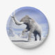 Grand mammouth marchant lentement dans la montagne neigeuse contre le vent