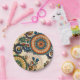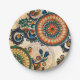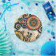 Plaques Abstraites en mandala floral en orange, bleu, vert et ivoire.