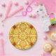 Assiettes En Carton Mandala motif, jaune, or et brun