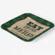 Ces assiettes de fête sur mesure ont un thème festif de Noël. L'arrière - plan dispose d'un motif de plaid de Buffalo vert rustique parsemé de flocons de neige. Une affiche vintage en papier parchemin est imprimée au centre et encadrée d'une bordure en feuille d'or. L'expression "Mangez Boire et Soyez Joyeux" est imprimée en haut dans une police vert foncé, suivie d'un exemple de nom de famille. Vous pouvez personnaliser les plaques pour inclure votre propre nom personnalisé ou un autre texte.