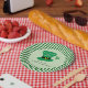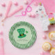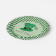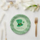 Cette plaque d'effigie du parti de la Saint-Patrick présente un dessin fantaisiste et audacieux d'un casquette de leprechaun avec le texte : Mangez, buvez et soyez irlandais. Le design apparaît au centre de la plaque avec une bordure rayée verte et blanche audacieuse.