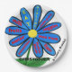 Nom personnalisé manger sain. Fleur marguerite bleue avec centre jaune et feuilles verts pour les enfants. Typographie des aliments nutritionnels en texte jaune, rouge et noir sur les pétales floraux. Personnalisez le nom ou supprimez. Faites de manger un moment amusant et sain au moment du repas avec un amour pour les bons aliments avec ces plaques de mélamine non toxiques. Laissez le texte tel quel, ou personnalisez-le. Oeuvres d'art originales et textos design 2018 par TamiraZDesigns.
