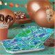 Assiettes En Carton Marbre bleu et vert Fluid Art Abstrait