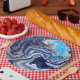 Assiettes En Carton Marbre bleu Fluid Art Anniversaire
