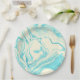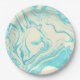 Une plaque en papier élégante et sophistiquée avec un élégant motif en faux marbre aux couleurs tourbillonnantes dans les tons bleu turquoise et crème.