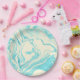 Assiettes En Carton Marbre cool design en Turquoise et Crème