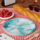 Assiettes En Carton Marbre d'encre or Mint Aqua