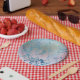 Assiettes En Carton Marbre Iridescente | Tendance Faux Holo bleu rose