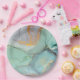 Assiettes En Carton Marbre vert bleu or assez