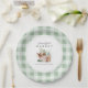 Servez avec charme avec cette assiette de shower de mariage sur le thème du marché fermier par Redwood & Vine Design Co. Avec une bordure gingham verte fraîche et un panier de fruits peints à la main, cette assiette en papier personnalisable est parfaite pour les douches de cuisine, les brunchs rustiques ou les fêtes de jardin. Un détail charmant pour une mariée qui est “fraîche du marché.”