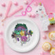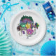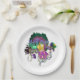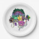 Ensemble de huit plaques en papier de 9 pouces avec une image festive Mardi Gras d'une coiffure pourpre et verte en plumes derrière des masques à plumes violettes, un casquette à paillettes fuchsia, perles vertes et violettes, ballons violets, verts et or, et deux coeurs améthystes violets. Voir la bonbons assortis pot, tasse expresso, flacon, tasse, lanceur, verre à balles, théière et dessous de verre. Voir toute la collection Mardi Gras Plate dans le FOOD/BEV | Section Plats.