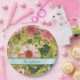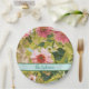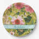 Ces assiettes font un excellent accent pour une fête, une réunion, un mariage ou tout autre événement. Personnalisez avec votre nom sur une bande bleu turquoise clair. Facile à enlever si vous ne voulez pas de nom. Des serviettes coordonnées sont disponibles. Les nuances de rose font ressortir ces margarousses sur les feuilles dans diverses nuances de vert, fraîches du jardin. Ce design est une œuvre originale de Phyllis Dobbs et est disponible sur plusieurs produits coordonnés.