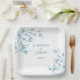 Cette plaque en papier design mariage est présentée avec une belle impression feuille bleue poussiéreuse. Nous offrons également des serviettes en papier assorties. Customisez cet élément et modifiez l'exemple de texte sur le vôtre avec ce modèle. Image sous licence