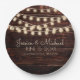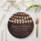 Bois rustique et lampes à cordes plaque personnalisée de réception de mariage. Ajoutez les noms du couple et la date du mariage.