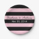 Plaques en papier mariage à rayures roses et noires. Motif rayé rose et noir.