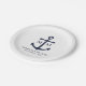 Ajoutez une touche élégante à votre mariage nautique avec cette plaque classique marine bleue ancre mariage papier. Conçu avec une illustration d'ancre bleu marine, il présente un monogramme personnalisé de mariée et de mariée, le nom et la date du mariage dans une police serif bleu marine sur un arrière - plan blanc. Parfait pour les mariages nautiques, les mariages sur la plage et plus.