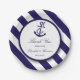 Ces assiettes en papier sont parfaites pour tout couple qui envisage un mariage romantique en bord de mer. Le design est orné d'un motif d'ancrage bleu marine fantaisiste sur une marine nautique et un arrière - plan rayé blanc. Le design simple peut être personnalisé pour convenir à votre événement spécial et sera l'accessoire parfait pour toute fête nautique sur la plage, y compris : douches nuptiales, fiançailles, wedding showers, fêtes d'anniversaire et bien plus encore.